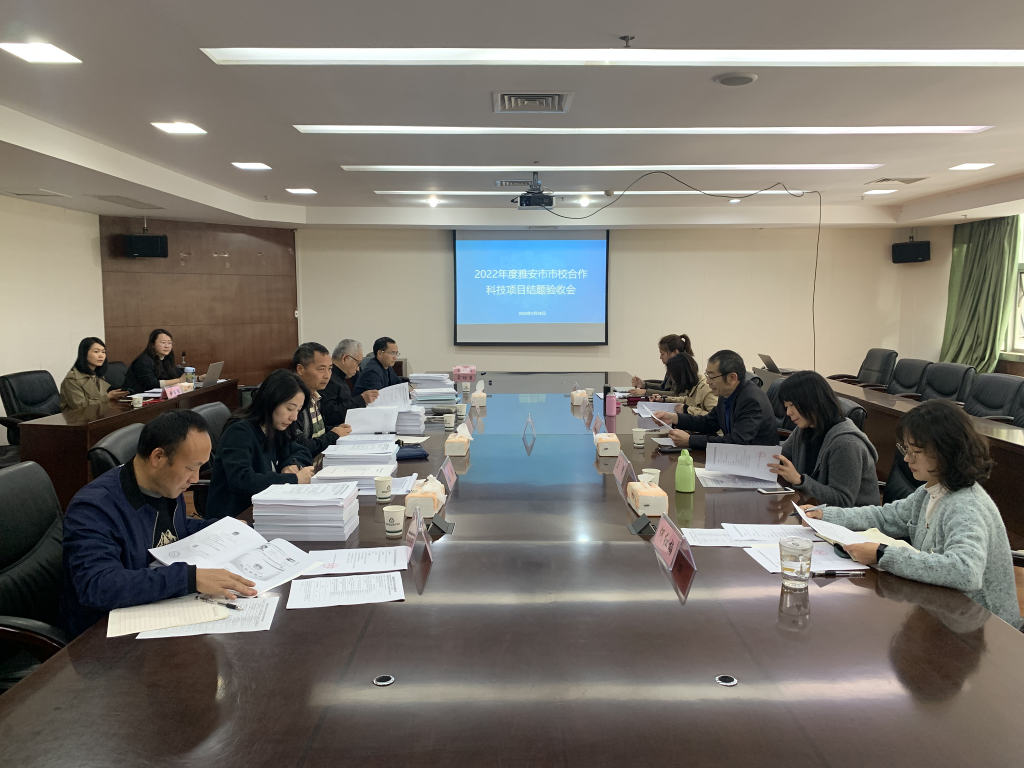 按照雅安市校合作管理办法和市科学技术局安排,3月28日,雅安四川农业大学新农村发展研究院服务总站在我校雅安校区综合楼会议室,组织相关专家对2022年立项的《突破性枇杷新品种“春花1号”示范推广》《雅安茶园快速投产和提质增效关键栽培技术研究》等13个雅安市市校合作科技项目进行了结题验收。雅安市科学技术局、我校乡村振兴学院相关负责人参加验收。
